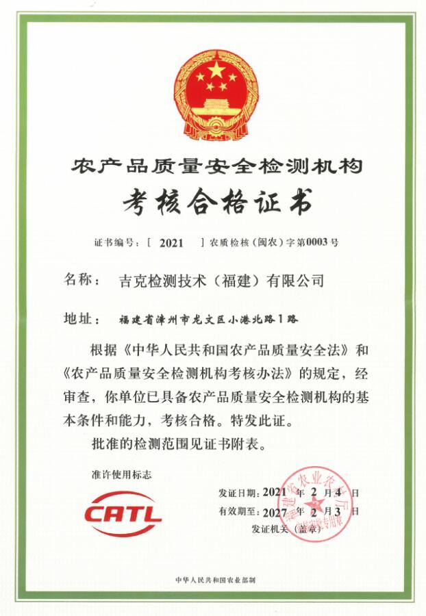 吉克檢測技術(shù)(福建)有限公司,位于福建省漳州市龍文區(qū)小港北路1號,于2019年8月注冊成立,是一家獨立的第三方檢測公司。公司已經(jīng)通過檢驗檢測機構(gòu)計量認證(CMA)、農(nóng)產(chǎn)品質(zhì)量安全檢測機構(gòu)資質(zhì)認證(CATL),獲得中國合格評定國家認可委員會(CNAS)認可。公司本著“嚴謹、規(guī)范、高效、協(xié)作”的原則和對客戶及社會高度負責的精神,充分利用本公司優(yōu)質(zhì)的檢測環(huán)境、先進的檢測設(shè)備和專業(yè)的技術(shù)人員,第一時間為客戶提供科學、公正、準確的檢驗檢測報告。       公司實驗室面積1100多平方米,儀器設(shè)備兩百多臺(套),固定資產(chǎn)一千多萬元,在職員工31人,技術(shù)人員中的中高級職稱及同等能力人數(shù)占60%以上。我們的服...